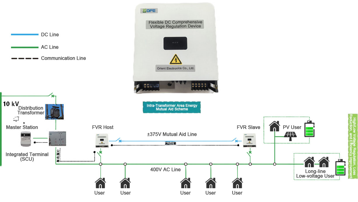 The flexible DC integrated voltage regulation device is advanced voltage regulation equipment based on power electronics technology. To meet the demand for flexible DC interconnection in transformer areas, Dongfang Electronics Corporation offers various converter modules that can be flexibly combined in parallel according to project requirements, supporting pole-mounted installation and multi-unit parallel operation.