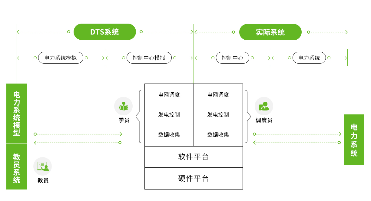 DTS係統由控製中心仿真、電力係統仿真和教員仿真三大模塊組成,控製中心仿真高度還原調度操作環境,電力係統仿真精準模擬電網穩態、dongtaijiguzhanggongkuang,jiaoyuanfangzhenmokuaizhichilinghuoshezhipeixunjincheng,kedingzhifuzachangjingyukaohefangan。xitongyushijiyunxinghuanjinggaoduyizhi,weitiaoduyuantigongchenjinshishizhanyanlian,guangfanyingyongyutiaoduyuanjinengtisheng、事故預演及競賽考核,是提升調度員實戰能力的重要工具。