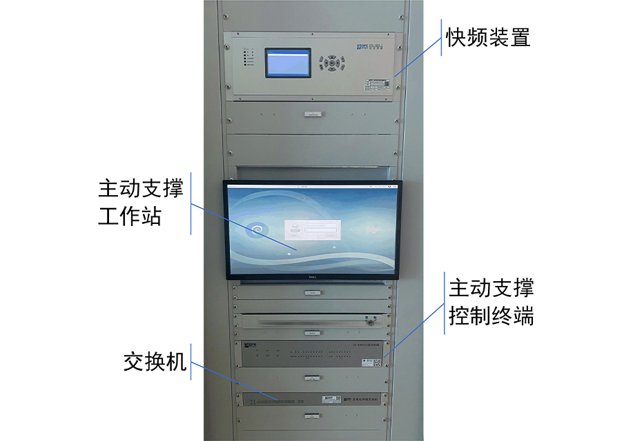 係統主要由主動支撐控製終端、快頻裝置和主動支撐工作站三部分組成。