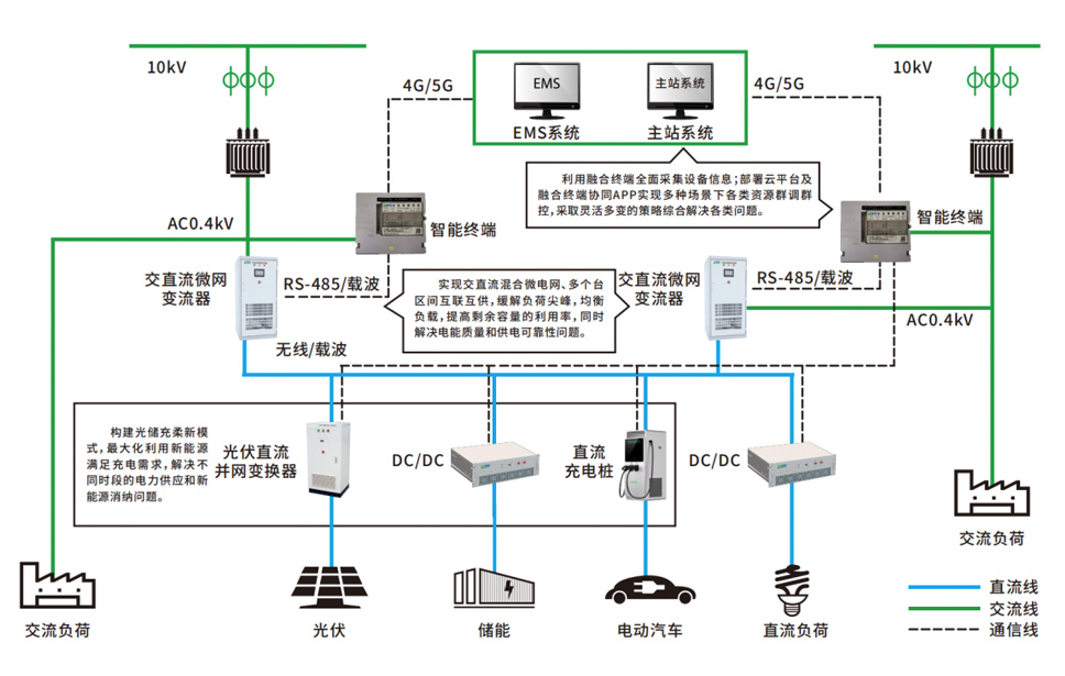 該方案能夠解決台區配變容量不足及過載、配電網末端低電壓或分布式光伏引起的過電壓、新能源消納問題以及電網故障時台區所屬負荷供電可靠性。同時通過柔性直流線路可以將不同電壓等級台區進行互聯,易於台區管理。